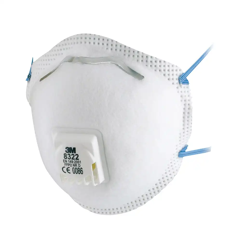 Die 3M® Atemschutzmaske "8322" FFP2 NR D mit Ausatemventil schützt Sie gegen gesundheitsschädliche Partikel auf der Basis von Wasser und Öl. Die Mittlere der drei FFP-Klassen hat eine maximale Gesamtleckage (Undichtigkeit) von 8% und filtert mindestens 94% der Schadstoffe aus der Luft. Der Arbeitsplatzgrenzwert (AGW) darf um maximal das 10-fache überschritten werden, sodass die Maske für den Arbeitsbereich noch zulässig ist. Die Atemschutzmaske "8322" findet vor allem in der Metallindustrie bei Schweiß-Arbeiten und ähnlichem sowie im Bergbau Anwendung.Die vorgeformten Masken der Serie 8300 haben eine stabile, äußere Schale, welche für eine höhere Standfestigkeit in rauen Umgebungen sorgt. An der Oberseite ist ein M-förmiger Nasenbügel angebracht, welcher sich schnell und bequem der Nase anpasst, ohne unangenehmen Druck zu erzeugen. Die textilen Kopfbänder sorgen für sicheren Halt und hohen Komfort an Kopf und Gesicht. Durch das weiche, gepolsterte Innenflies liegt die Maske gut auf dem Gesicht auf und garantiert auch ohne Schaumstoffeinlage einen sicheren Dichtsitz.