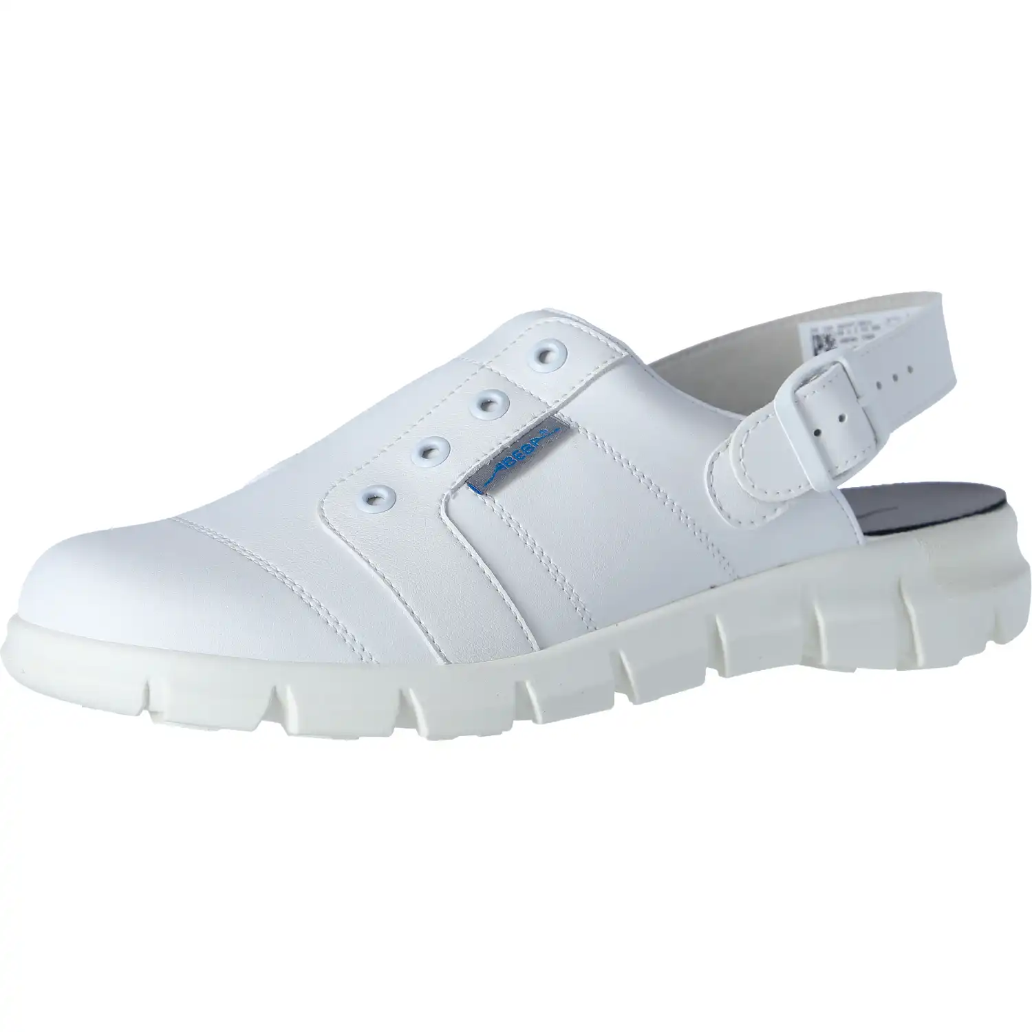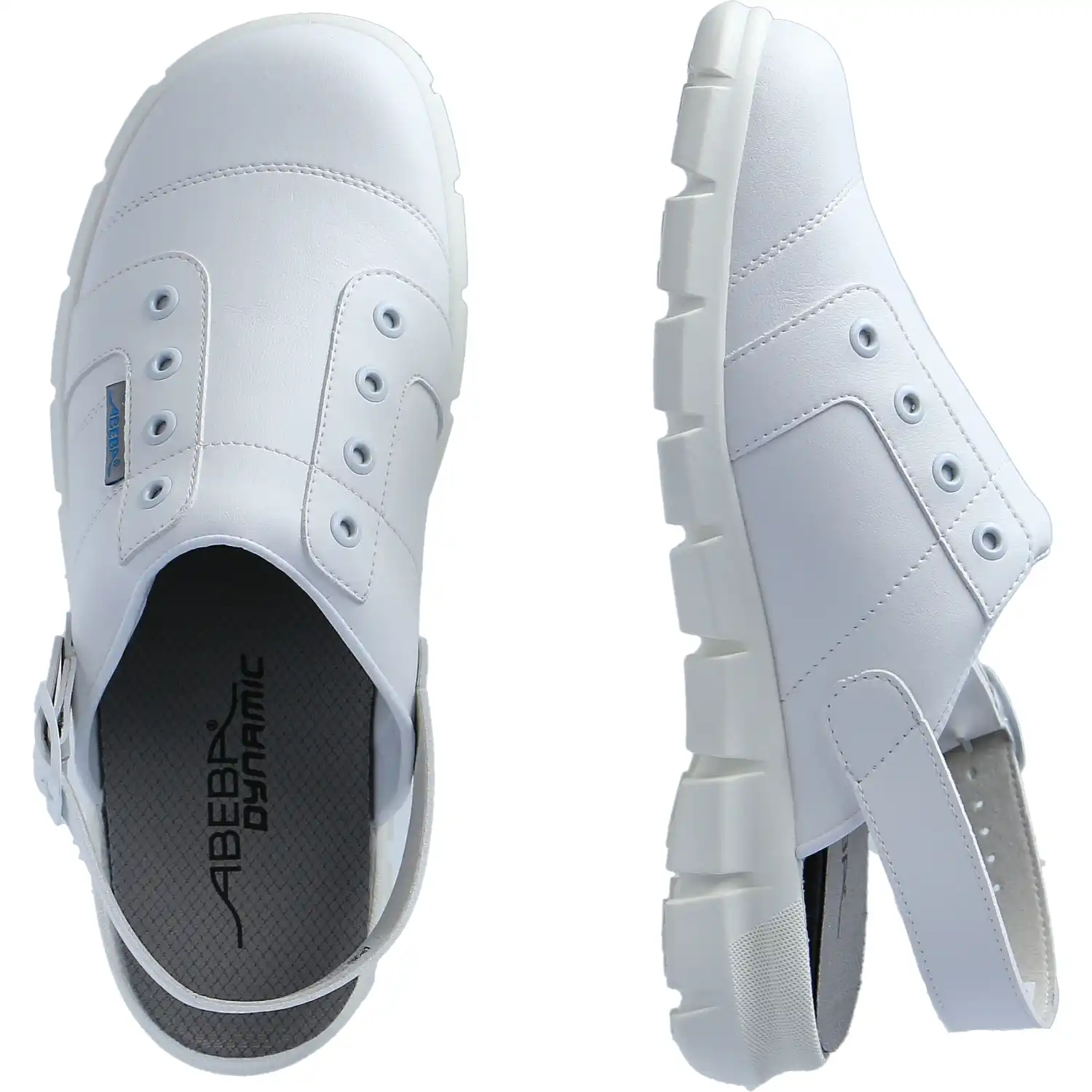 Die Berufsclogs "DYNAMIC" 7360 - ABEBA® sind der ideale Begleiter für alle Arbeiten, bei denen keine Zehenschutzkappe notwendig ist. Besonders im Lebensmittelverarbeitungsbereich sind die Schuhe optimal einsetzbar, da diese HACCP konform sind. Der Berufsclog ist aus Mikrofaser gefertigt. Das atmungsaktive Innenfutter ist mit Silberionen ausgestattet. Zusammen ergibt das Obermaterial mit dem Innenfutter eine hoch-atmungsaktive Kombination. Die Laufsohle der Berufsclogs ist aus weichem TPU gefertigt, was die Schritte des Trägers optimal dämpft und die Sohle mit rutschhemmenden Eigenschaften versieht. Im Inneren der Clogs ist die "acc-wave"-Einlegesohle verbaut, welche den Tragekomfort deutlich erhöht. Die Einlegesohle ist jederzeit auswechselbar. Die Berufsclogs sind gemäß der EN ISO 20347:2012 mit der Klasse OB ausgestattet. Zusätzlich zu den Grundanforderungen der Klasse OB sind die Schuhe mit einigen Zusatzzertifizierungen ausgestattet. Gemäß des SRC-Zertifikates bietet die Laufsohle erhöhte Rutschfestigkeit auf glatten Keramik- und Stahlböden. Laut DGUV 112-191 (ehem. BRG 191) sind die Berufsclogs außerdem für orthopädische Einlagen zugelassen. Diese Regel schreibt vor, dass orthopädische Einlagen nur in Verbindung mit einer gültigen Baumusterprüfung in Sicherheitsschuh eingelegt werden dürfen, damit diese weiterhin der Norm EN ISO 20345entsprechen. Der Fersenriemen ist feststehend und verstellbar. Nachdem die passende Weite des Fersenriemens ausgewählt wurde, wird dieser mit einer Kunststoffschnalle befestigt.Besonderheiten