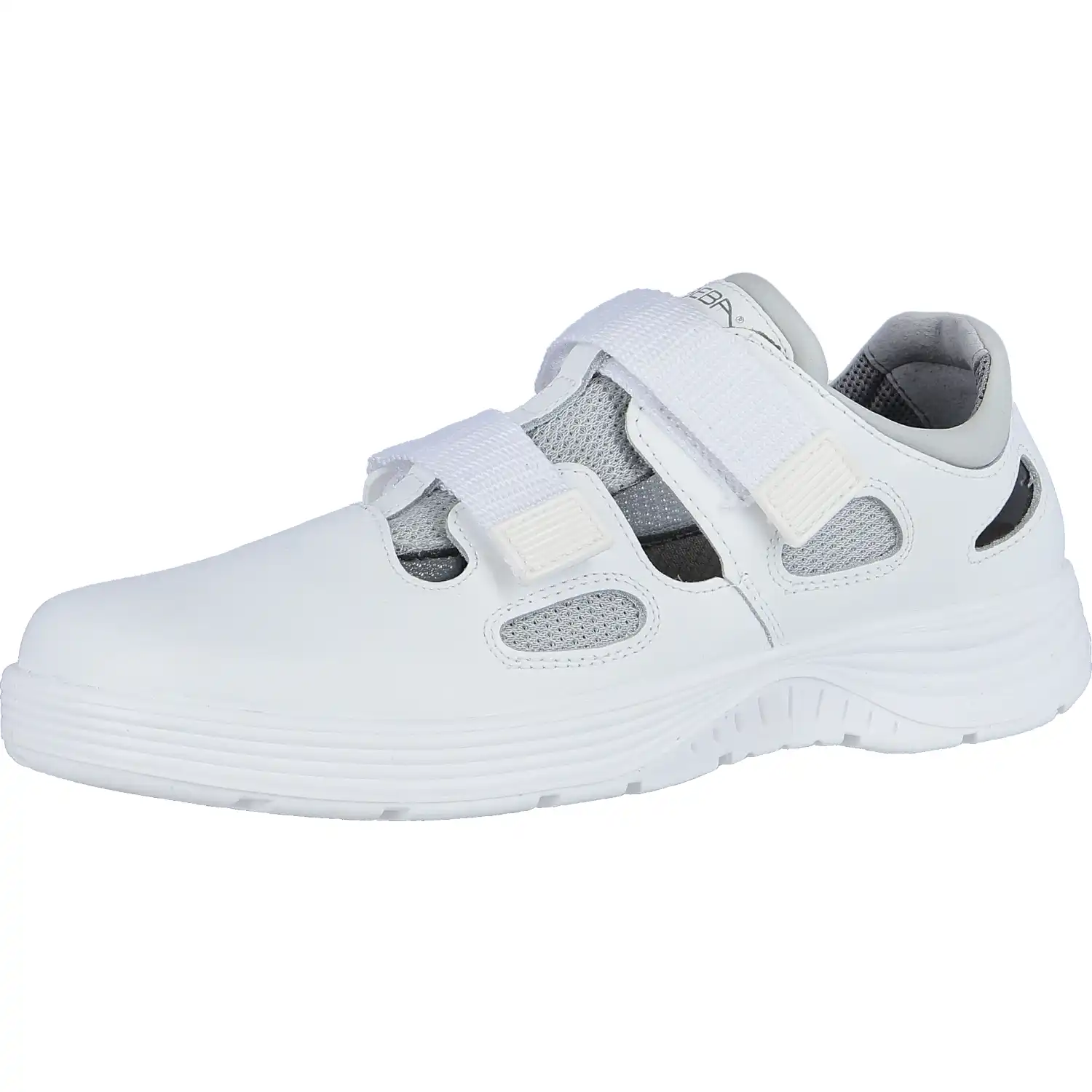 Die Berufssandalen O1 "711131" x-light - ABEBA® aus der x-light-Serie sind der ideale Begleiter für alle Arbeiten, bei denen keine Zehenschutzkappe notwendig ist. Die Sandale ist aus weißem Glattleder gefertigt und mit atmungsaktivem Air-Mesh Textileinsätzen ausgestattet. Das Innenfutter ist ebenfalls hoch atmungsaktiv und mit Silberionen ausgestattet. Die Laufsohle der Berufssandale ist aus robustem und gleichzeitig rutschhemmendem PU gefertigt. Die Laufsohle ist im Gegensatz zur Vorgängerserie Light® leichter und stabiler, sowie kraftstoffbeständig. Die Berufssandalen passen sich optimal an die jeweilige Passform des Trägers an. Im Inneren der Arbeittschuhe ist die "Active-Comfort"-Einlegesohle (10018253) verbaut, welche den Tragekomfort deutlich erhöht. Die Einlegesohle ist jederzeit auswechselbar. Durch die innovative Technologie der Einlegesohle wird der Mittelfuß zusätzlich unterstützt. Die Einlegesohle wirkt antibakteriell und antistatisch. Durch die hohe Atmungsaktivität der Sohle wird feuchten Füßen, als auch Gerüchen vorgebeugt, da die Sandalen die Feuchtigkeit aufnehmen und nach außen abgeben. Zusätzlich hat die Einlegesohle eine dämpfende Funktion. Somit werden die Schritte des Trägers beim Gehen abgefedert und die Füße werden an langen Tagen entlastet. Die Schuhe sind gemäß der EN ISO 20347:2012 mit der Klasse O1 ausgestattet. Zusätzlich zu den Grundanforderungen der Klasse O1 sind die Schuhe mit einigen Zusatzzertifizierungen ausgestattet. Gemäß des SRC-Zertifikates bietet die Laufsohle erhöhte Rutschfestigkeit auf glatten Keramik- und Stahlböden. Gem. DGUV 112-191 (ehem. BRG 191) sind die Schuhe für orthopädische Einlagen zugelassen. Diese Regel schreibt vor, dass orthopädische Einlagen nur in Verbindung mit einer gültigen Baumusterprüfung in Sicherheitsschuh eingelegt werden dürfen, damit diese weiterhin der Norm EN ISO 20345 entsprechen. Die Zertifizierung für die ORTHOstat Sohle und Sohlenerhöhung sind beantragt. ORTHOstat ist die individuelle orthopädische Einlage nach EN ISO 20347:2012 und 20345:2011 von ABEBA®. Die anpassbare Einlegesohle von ABEBA® wurde in enger Zusammen­arbeit mit dem orthopädischen Fachbetrieb "Doppler" entwickelt. Der Ristbereich der Schuhe ist verstellbar. Verschlossen werden die Schuhe mit einem Doppelklettverschluss.