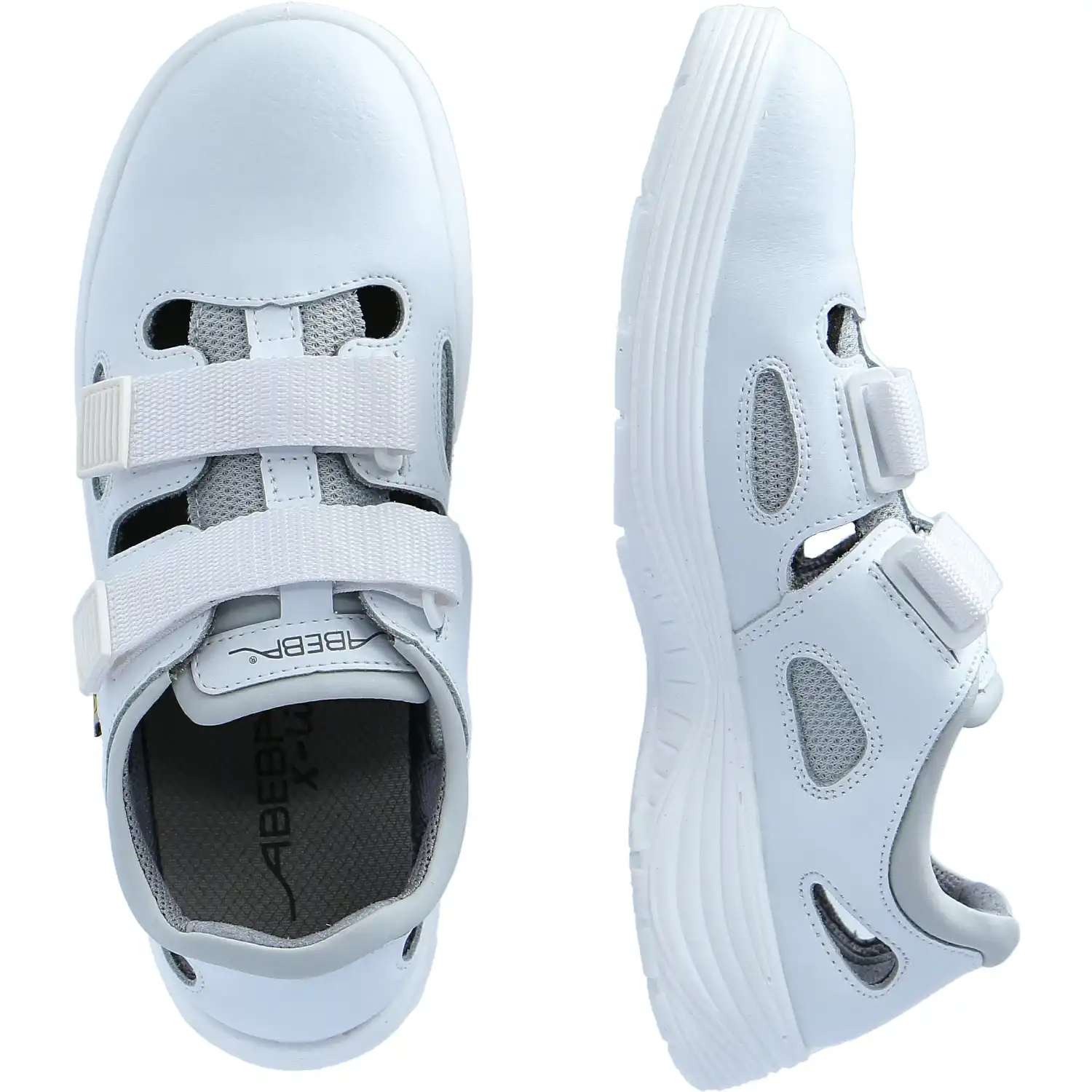 Die Sicherheitssandale S1 "7131031" ESD x-light - ABEBA® aus der x-light-Serie sind der ideale Begleiter für alle Arbeiten in warmer Umgebung. Die Sicherheitssandale ist aus GlattLeder gefertigt. Das atmungsaktive Innenfutter ist mit Silberionen ausgestattet, welches in Kombination mit dem Obermaterial eine sehr gute Belüftung ermöglicht. Die Belüftungseinsätze an den Seiten sorgen für die ideale Luftzirkulation. Die Laufsohle der Sandale ist aus robustem und gleichzeitig rutschhemmendem PU gefertigt. Die Laufsohle ist im Gegensatz zur Vorgängerserie Light® leichter und stabiler, sowie kraftstoffbeständig. Die Sicherheitssandalen passen sich optimal an die jeweilige Passform des Trägers an. Im Inneren der Clogs ist die "Active-Comfort"-Einlegesohle (10018246) verbaut, welche den Tragekomfort deutlich erhöht. Die Einlegesohle ist jederzeit auswechselbar. Durch die innovative Technologie der Einlegesohle wird der Mittelfuß zusätzlich unterstützt. Die Einlegesohle wirkt antibakteriell und antistatisch. Durch die hohe Atmungsaktivität der Sohle wird feuchten Füßen, als auch Gerüchen vorgebeugt, da die Sicherheitssandale die Feuchtigkeit aufnehmen und nach außen abgeben. Zusätzlich hat die Einlegesohle eine dämpfende Funktion. Somit werden die Schritte des Trägers beim Gehen abgefedert und die Füße werden an langen Tagen entlastet. Die Sandalen sind gemäß der EN ISO 20347:2012 mit der Klasse S1 ausgestattet. Zusätzlich zu den Grundanforderungen der Klasse S1 sind die Schuhe mit einigen Zusatzzertifizierungen ausgestattet. Gemäß des SRC-Zertifikates bietet die Laufsohle erhöhte Rutschfestigkeit auf glatten Keramik- und Stahlböden. Gem. DGUV 112-191 (ehem. BRG 191) sind die Arbeitsschuhe für orthopädische Einlagen zugelassen. Diese Regel schreibt vor, dass orthopädische Einlagen nur in Verbindung mit einer gültigen Baumusterprüfung in Sicherheitsschuh eingelegt werden dürfen, damit diese weiterhin der Norm EN ISO 20345 entsprechen. Die Sicherheitsschuhe sind mit einem ESD-Schutz gemäß der EN 61340 ausgestattet, welche eine elektrostatische Entladung verhindert. Somit können diese auch in sensiblen Bereichen, wie z.B. der Mikroelektronik-Industrie oder Laboratorien, verwendet werden, da hier eine plötzliche statische Entladung empfindliche Schaltkreise irreparabel beschädigen könnte.Die Zertifizierung für die ORTHOstat Sohle und Sohlenerhöhung sind beantragt. ORTHOstat ist die individuelle orthopädische Einlage nach EN ISO 20347:2012 und 20345:2011 von ABEBA®. Die anpassbare Einlegesohle von ABEBA® wurde in enger Zusammenarbeit mit dem orthopädischen Fachbetrieb "Doppler" entwickelt. Um die nötige Sicherheit kümmert sich die strapazierfähige Schutzkappe aus Stahl, welche Ihre Zehen effektiv vor herabfallenden Gegenständen und Stößen schützt. Verschlossen werden die Sicherheitsschuhe mit einem Doppelklettverschluss.Besonderheiten