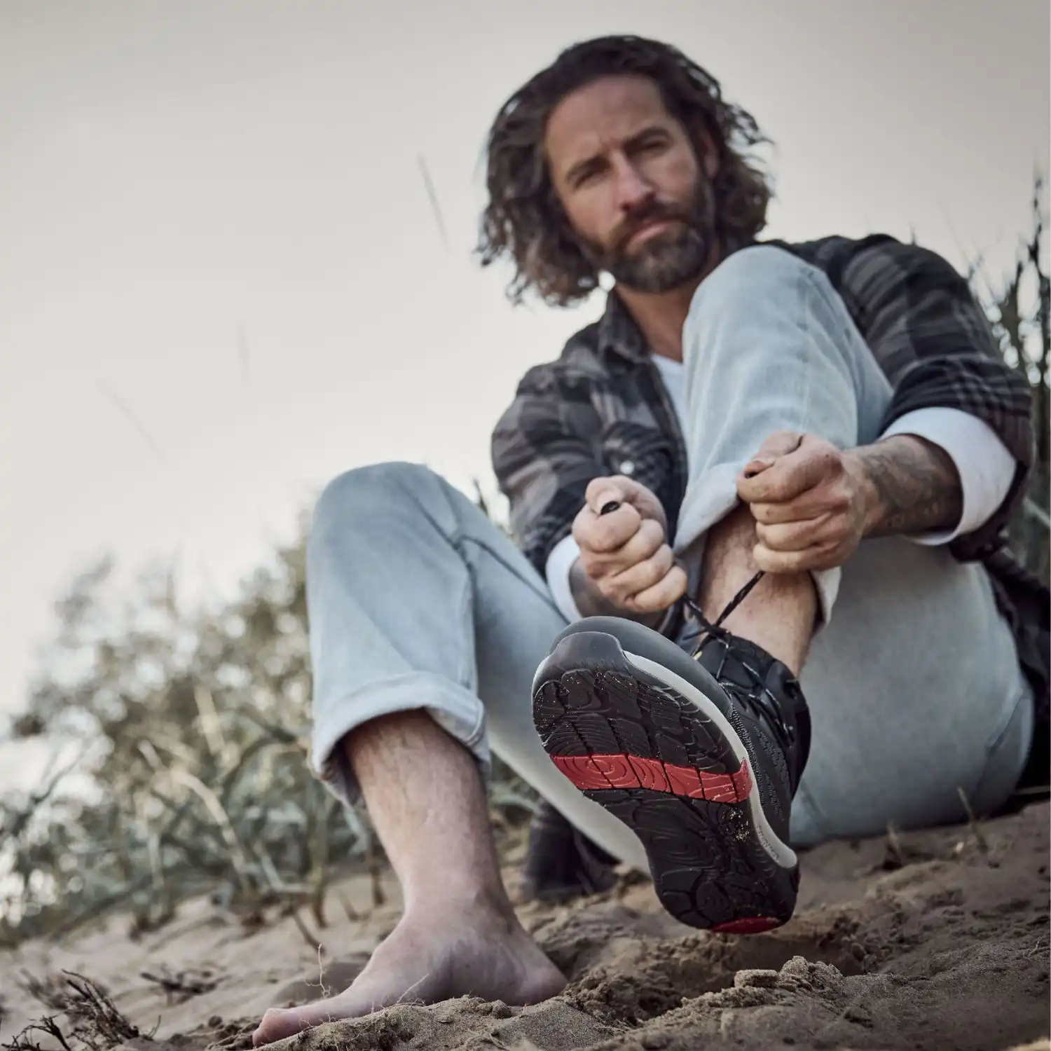 Doch das Herzstück der Arbeitsschuhe ist die komplett neu entwickelte Barefoot-Sohle von BAAK®. Als Zero-Drop-Sohle ist diese komplett ohne Absatz gefertigt, wodurch Ihre Füße komplett flach auf dem Boden stehen. Dabei glänzt sie mit ihrer herausragenden Flexibilität, wodurch Sie jede Oberfläche Ihres Untergrundes uneingeschränkt wahrnehmen können. Die hierdurch erlangte Trittsicherheit sorgt für optimalen Stand auf fast allen Böden.