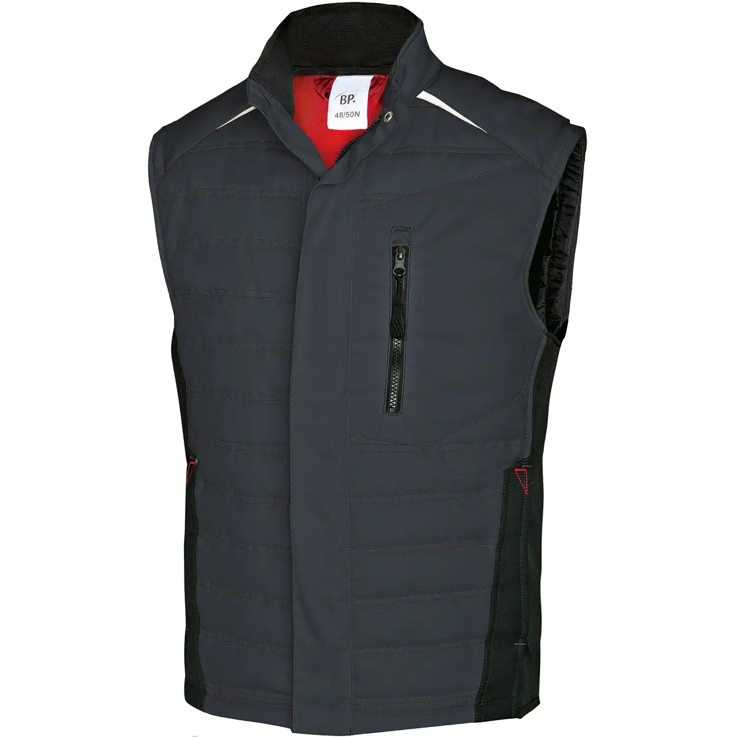 Die Winter-Steppweste „1986-570“ aus der Bplus-Serie von BP® ist eine praktische Zwischenschicht für die kälteren Jahreszeiten. Gefertigt ist die Weste aus einem klassischen Mischgewebe, welches durch den Baumwollanteil von ca. 250g/m² angenehm weich auf der Haut liegt. Im Inneren ist gleichzeitig ein weiches Steppfutter eingesetzt, welches einen großen Teil Ihrer Körperwärme speichert und Sie somit auch in eisigen Umgebungen angenehm warm hält.Der Schnitt der Winterweste ist relativ schmal gehalten und bietet Ihnen eine sportliche Silhouette. Verschlossen wird sie über einen durchgehend verdeckten 2-Wege-Frontreißverschluss, der in einem mittelhohen Stehkragen mit Fleece-Futter endet. Die Ärmelausschnitte sind zudem mit elastischen Bündchen eingefasst, wodurch das Eindringen von Wind verhindert wird. Für einen sicheren Sitz ist der verlängerte Rücken mit einem elastischen Kordelzug ausgestattet. Reflektierende Applikationen an Schultern und Rücken erhöhen gleichzeitig Ihre Sichtbarkeit in dunklen Umgebungen.