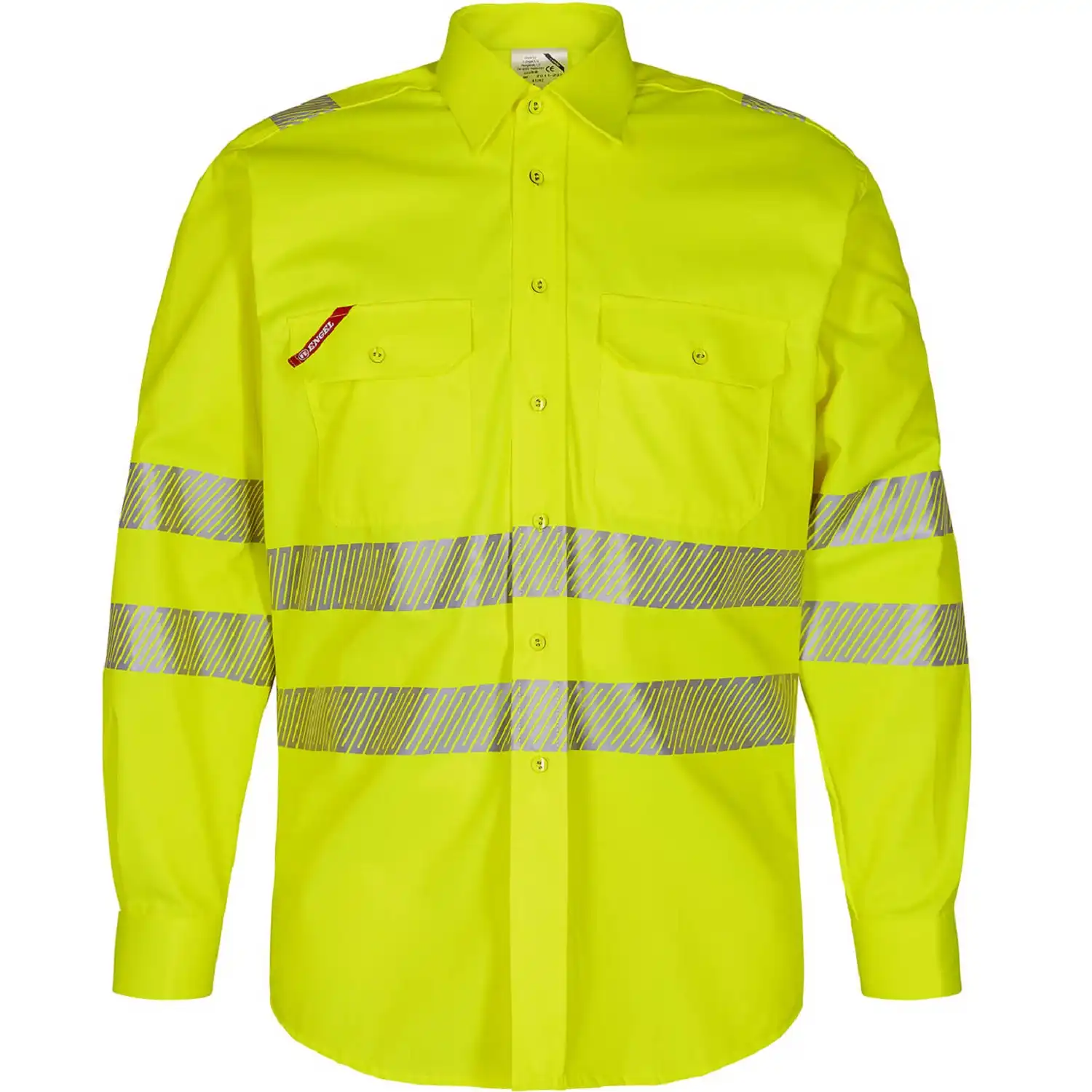 Das Warnschutzhemd "Safety" Kl. 3 von Engel® ist ein praktischer Begleiter für wärmere Umgebungen. Das Obermaterial ist aus einem geschmeidigen Mischgewebe mit ca. 195g/m² gefertigt, dessen Innenseite aus Baumwolle besteht. So liegt das Hemd angenehm auf der Haut und bietet gleichzeitig hohen Tragekomfort. Der gerade Schnitt sorgt zudem für sehr gute Bewegungsfreiheit.