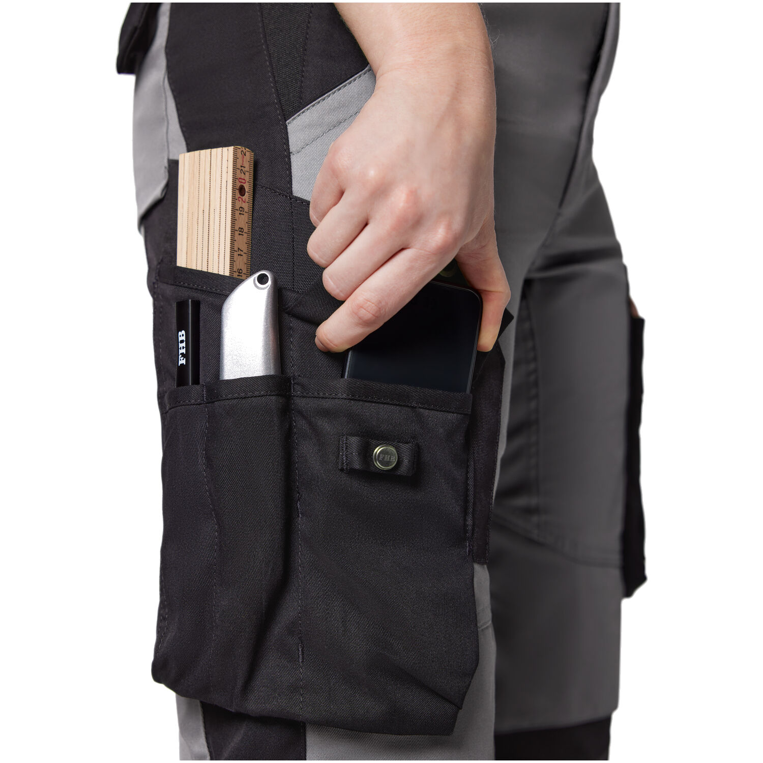 Die FHB® Damen Arbeitshose "ANNETTE" 125610 wurde speziell für Frauen entwickelt, die im Arbeitsalltag auf Komfort, Funktion und Strapazierfähigkeit setzen. Die moderne feminine Passform passt sich optimal der weiblichen Silhouette an und sorgt für einen professionellen Look bei gleichzeitig hoher Bewegungsfreiheit. Der elastische Stretchbund erhöht den Tragekomfort bei häufigem Bücken, Knien oder Klettern. Das robuste Mischgewebe aus Baumwolle und Polyester mit ca. 250 g/m² ist angenehm zu tragen und zugleich besonders widerstandsfähig. Verstärkte Cordura-Kniebereiche mit zertifiziertem Knieschutz sowie zahlreiche Volumentaschen bieten praktische Unterstützung im Arbeitsalltag. Reflektierende Markierungen im Wadenbereich erhöhen zusätzlich die Sichtbarkeit.