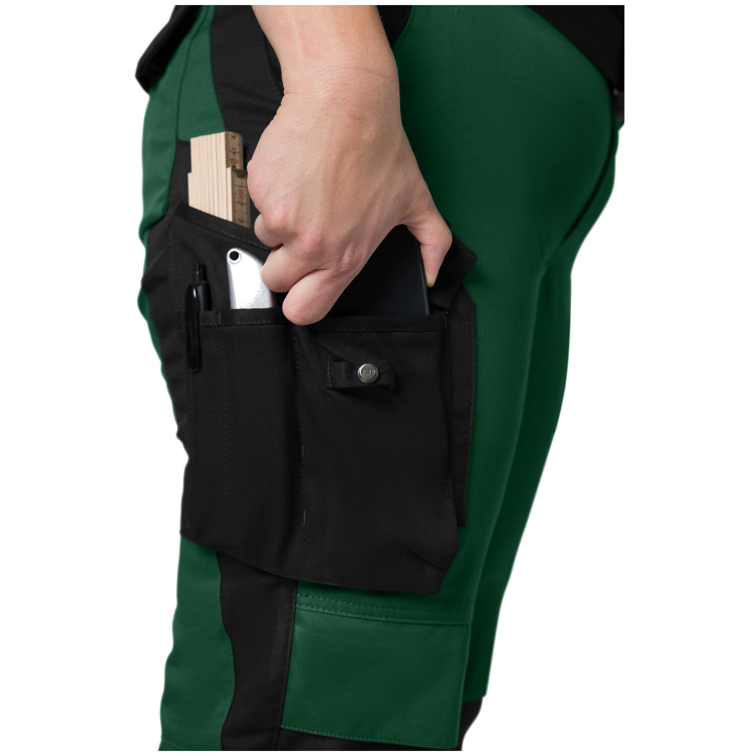 Die FHB® Damen Arbeitshose "ANNETTE" 125610 wurde speziell für Frauen entwickelt, die im Arbeitsalltag auf Komfort, Funktion und Strapazierfähigkeit setzen. Die moderne feminine Passform passt sich optimal der weiblichen Silhouette an und sorgt für einen professionellen Look bei gleichzeitig hoher Bewegungsfreiheit. Der elastische Stretchbund erhöht den Tragekomfort bei häufigem Bücken, Knien oder Klettern. Das robuste Mischgewebe aus Baumwolle und Polyester mit ca. 250 g/m² ist angenehm zu tragen und zugleich besonders widerstandsfähig. Verstärkte Cordura-Kniebereiche mit zertifiziertem Knieschutz sowie zahlreiche Volumentaschen bieten praktische Unterstützung im Arbeitsalltag. Reflektierende Markierungen im Wadenbereich erhöhen zusätzlich die Sichtbarkeit.
