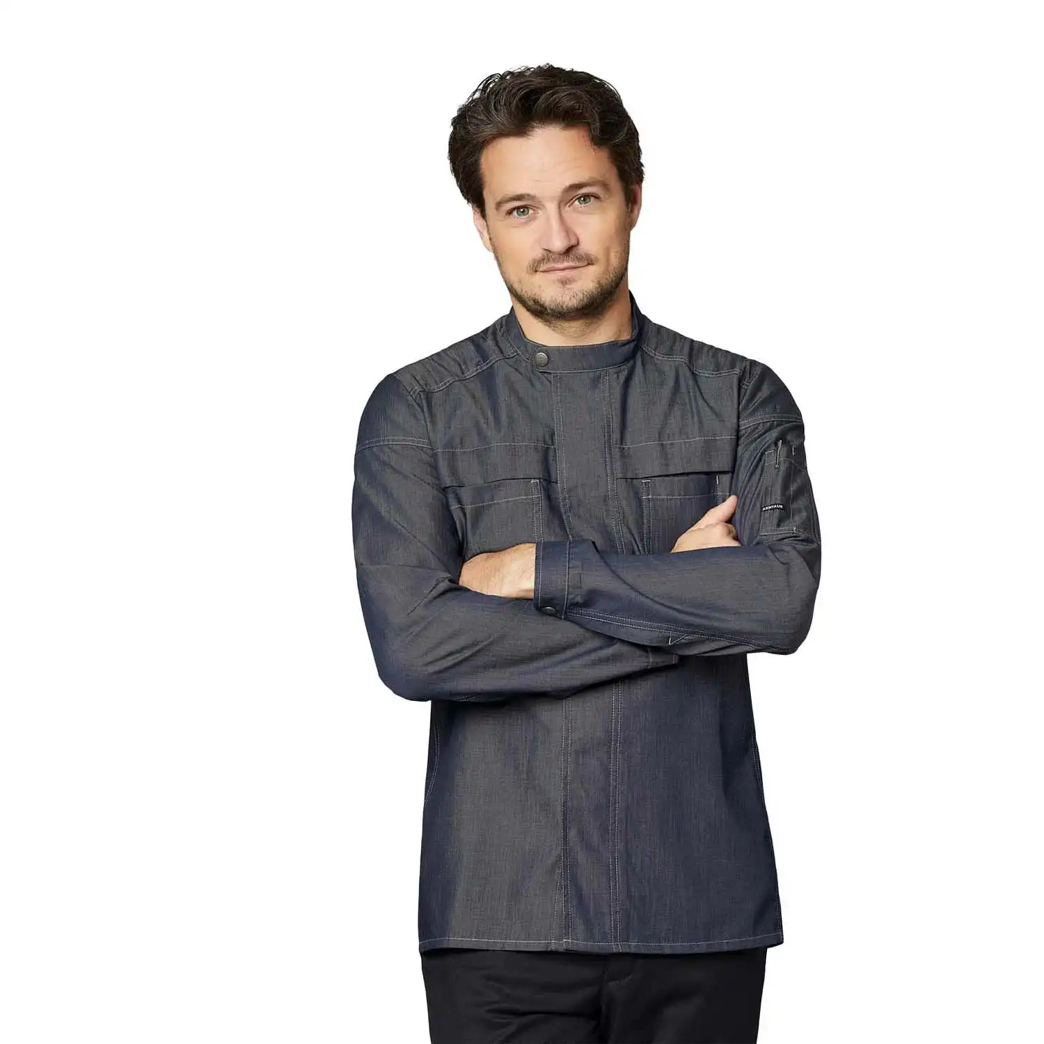 - 2 abgedeckte Druckknöpfe über den Brusttaschen für Snap-On-Schürzen