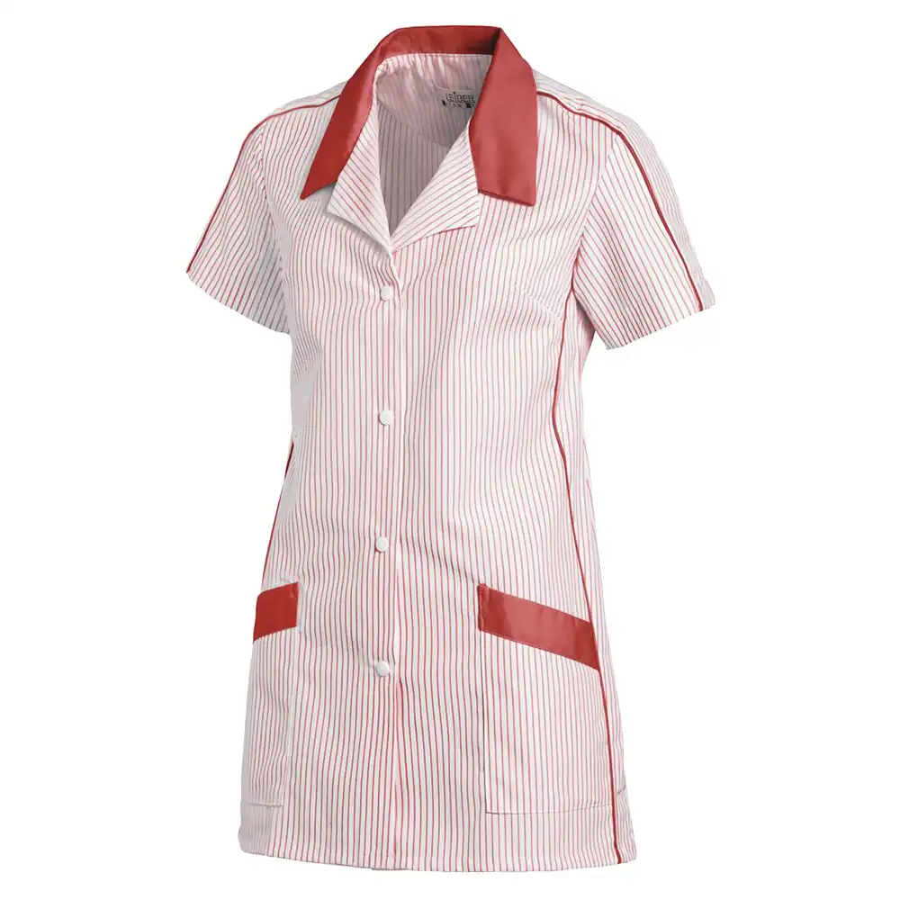Der Hosenkasack "08/559" von LEIBER® ist durch seinen modernen Schnitt ideal für die Anwendung im Bereich der Gastronomie. Das Obermaterial besteht aus einem Mischgewebe mit einem Baumwollanteil von 35%, was den Kasack angenehm weich macht. Er ist in einem modischen Streifenmuster gehalten. Für die Optik wurde an Schulter, Ärmel und Seiten Paspeln angebracht. Ein Schlitz im Rückenteil sorgt für eine bessere Bewegungsfreiheit. Ebenso verfügt der Hosenkasack über zwei seitliche Einschubtaschen, welche auch als Stauraum dienen. Verschlossen wird der Hosenkasack über eine vordere Druckknopfleiste. Der Hosenkasack ist für die Industriewäsche geeignet.