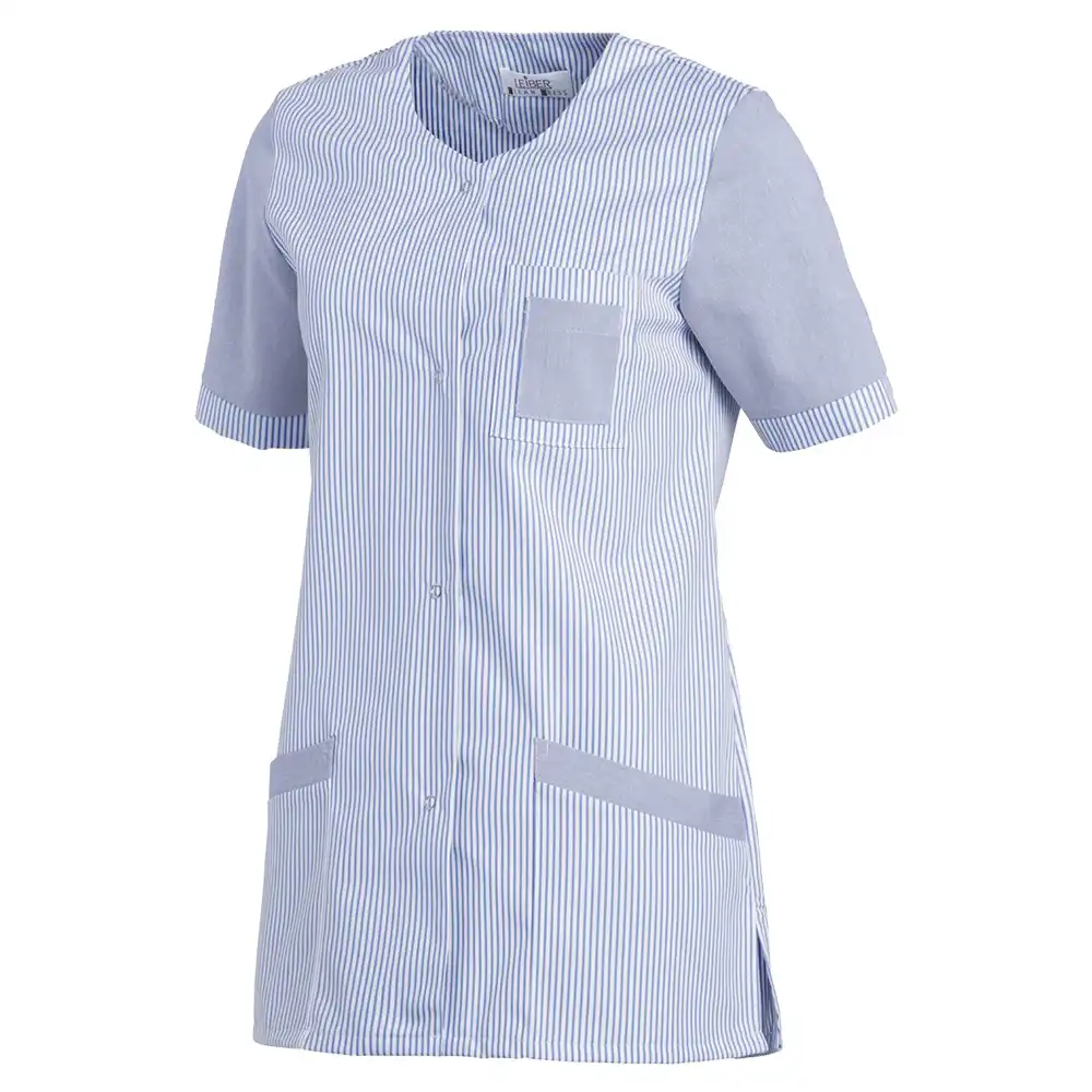 Der Hosenkasack Halbarm "08/705" von LEIBER® ist durch seinen klassischen und bequemen Schnitt ideal für den Einsatz im Bereich der Medizin und Pflege. Das Obermaterial besteht aus einem Mischgewebe, mit einem Baumwollanteil von 35%, was den Kasack angenehm weich macht. Für die Optik sind kontrastfarbige Einsätze an den Ärmeln und den Taschen angebracht. Die Seitenschlitze sorgen für eine bessere Bewegungsfreiheit. Ebenso verfügt der Hosenkasack über zwei seitliche Einschubtaschen, sowie einer Brusttasche mit einem kleinen aufgesetzten Fach. Verschlossen wird der Hosenkasack über eine vordere Druckknopfleiste. Der Hosenkasack ist für die Industriewäsche geeignet.Besonderheiten