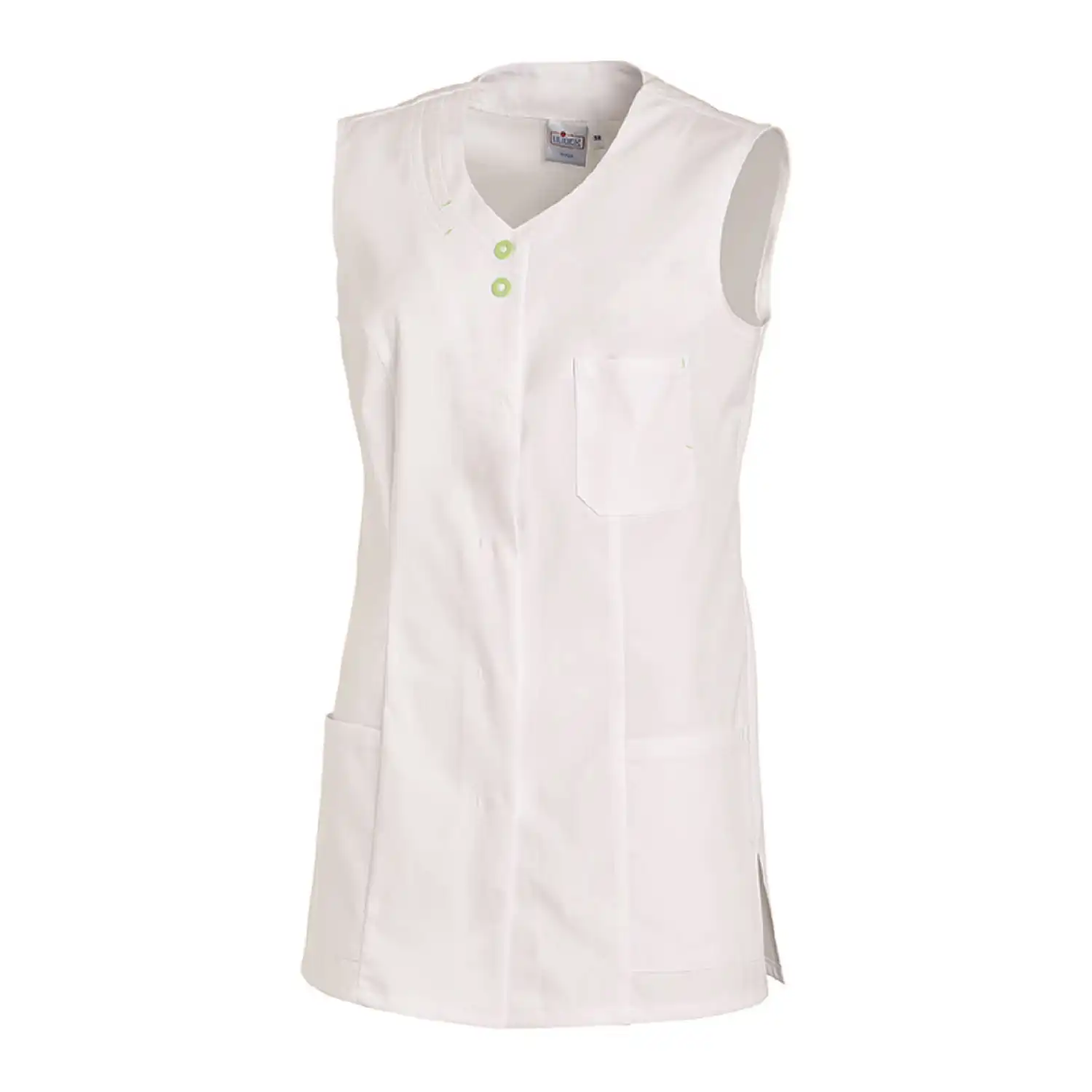 Der Hosenkasack ohne Arm "04/2758" von LEIBER® ist ein klassischer Begleiter im Bereich der Gastronomie. Das Obermaterial besteht aus einem Mischgewebe, mit einem Baumwollanteil von 35%, welches den Hosenkasack angenehm weich macht. Der ärmellose Kasack verfügt über zwei seitliche Einschubtaschen und eine Brusttasche, welche auch als Stauraum dienen.Ebenso ist eine Ziersteppung in einer Kontrastfarbe vorhanden.
