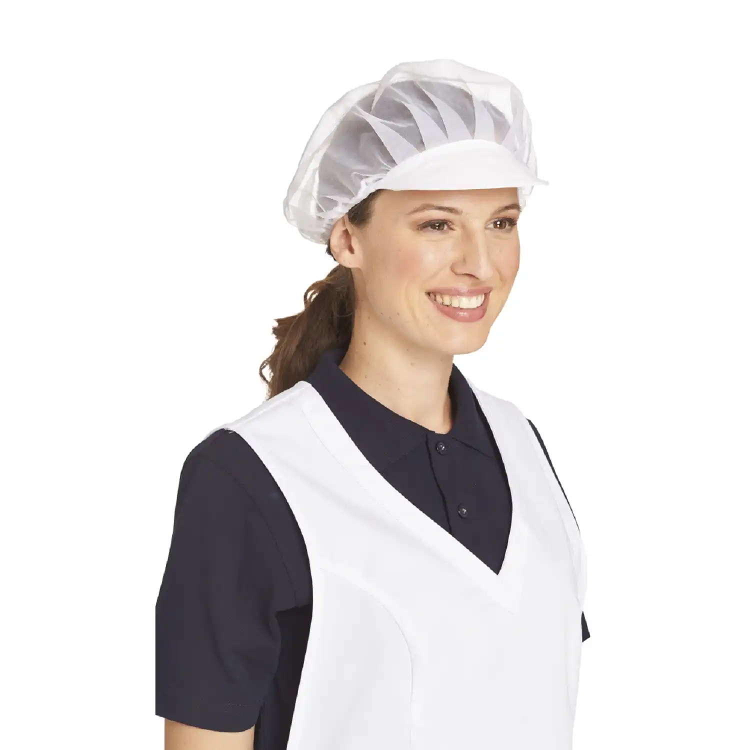 Die Netzhaube mit Schirm "02/119" von LEIBER® ist ideal für den Bereich der Gastronomie, Lebensmittelverarbeitung und Labore. Das Obermaterial der Haube besteht zu 100 % aus Polyamid bei ca. 30 g/m² und der Schirm ist aus 100% Baumwolle bei ca. 210 g/m² gefertigt. Die Haube bietet einen bequemen und störungsfreien Sitz und dank des elastischen Bündchens ebenfalls eine Universalgröße.Besonderheiten