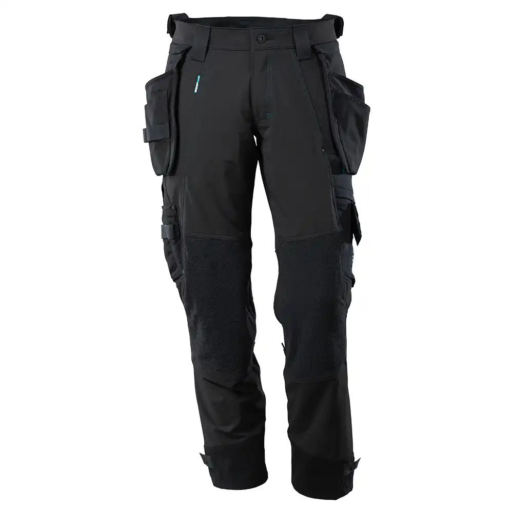 Die Handwerkerhose Stretch Advanced von MASCOT® ist der ultimative Begleiter für Arbeiten mit viel Bewegung. Das Obermaterial ist aus einem innovativen 4-Wege Stretch-Material von ca. 92% Nylon und 8% Elasthan gefertigt, welches Ihnen bis dato unerreichte Bewegungsfreiheit bietet. Zusätzlich ist das Gewebe angenehm leicht, atmungsaktiv und mit einer wasserabweisenden Vorbehandlung ausgestattet. Die verstärkten Dyneema®-Kniepolstertaschen sind mit seitlichen Einschüben ausgestattet und können durch Reißverschlüsse belüftet werden. Der breite Rundbund mit Jeansknopf und Reißverschluss sorgt dabei für stets optimalen Sitz. Die ergonomisch in das Design integrierten Taschenkombinationen bieten für alle wichtigen Arbeitsutensilien einen sicheren Platz. An Innenbein und Schritt sind doppelte Kappnähte eingesetzt, um den Hosenboden nochmals zu verstärken. Die Beinabschlüsse sind aus CORDURA® gefertigt.Zusätzlich dazu sind an den Außenseiten der Waden reflektierende Applikationen angebracht. Diese werfen einfallendes Licht zur Quelle zurück und erhöhen so Ihre Sichtbarkeit in dunklen Umgebungen.