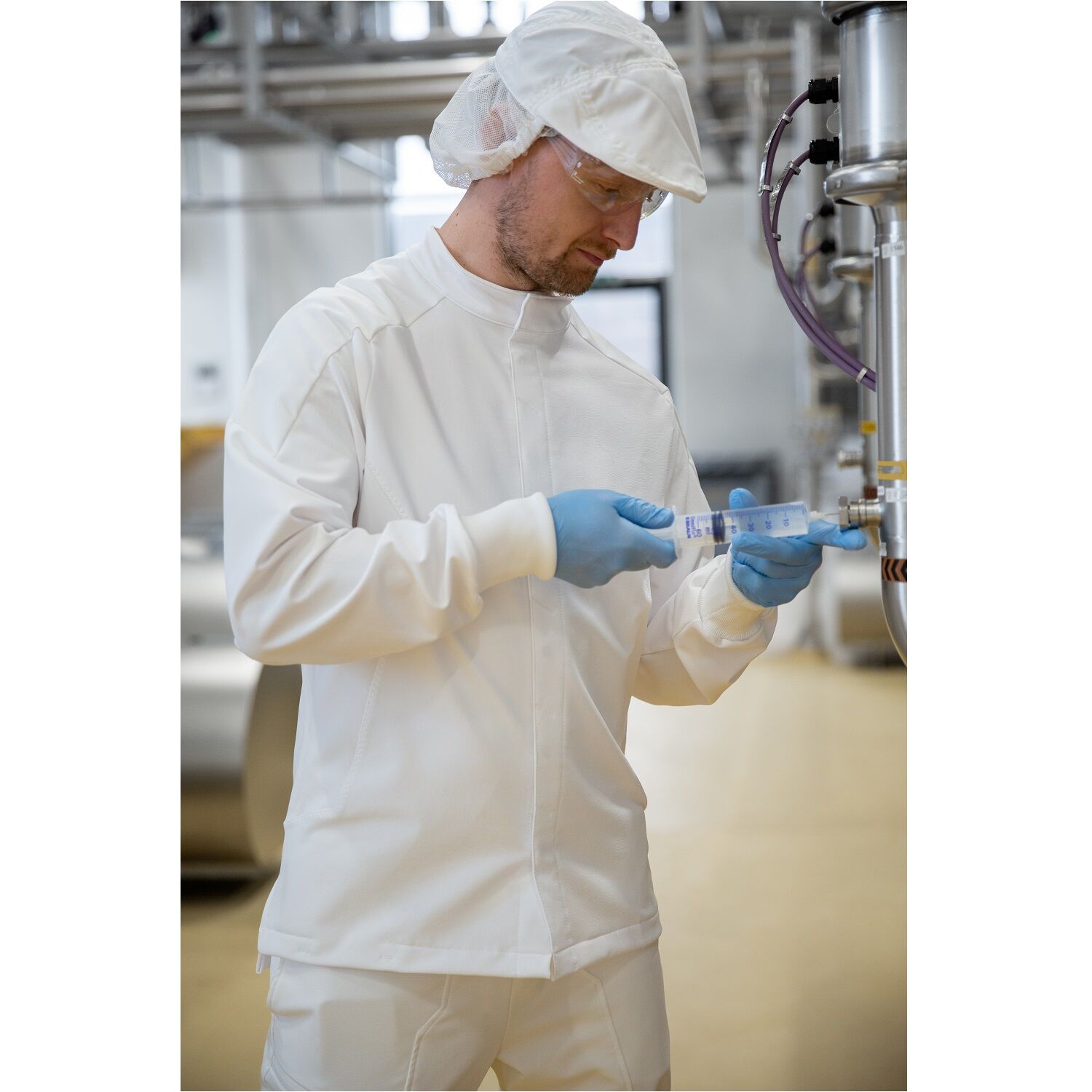 Für den Einsatz in HACCP-Bereichen lässt sich die Schiebermütze angenehm einfach pflegen. So ist sie für Industriewäsche geeignet, kann chemisch trockengereinigt werden und hält Waschtemperaturen von bis zu 60°C stand.