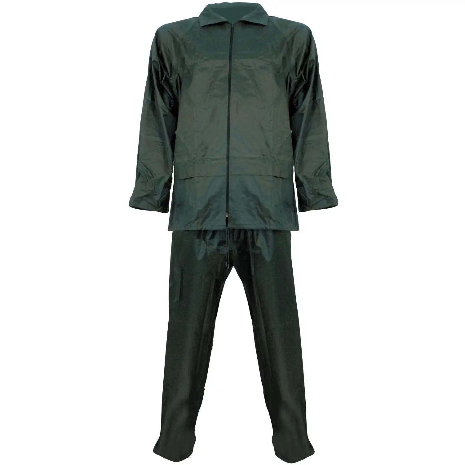 Das Regen-Set „SPLASH" 4010 aus der Basic-Serie von OXXA® ist ein praktischer Begleiter für überraschende Regenschauer. Gefertigt sind die Regenhose- und Jacke aus einem geschmeidigen Polyester-Gewebe, welches durch sein Materialgewicht von nur ca. 170 g/m² sehr leicht auf der Haut liegt. Um den Nässeschutz kümmert sich hierbei die PVC-Beschichtung, welche dem Regenanzug stark wasserabweisende Eigenschaften verleiht.
