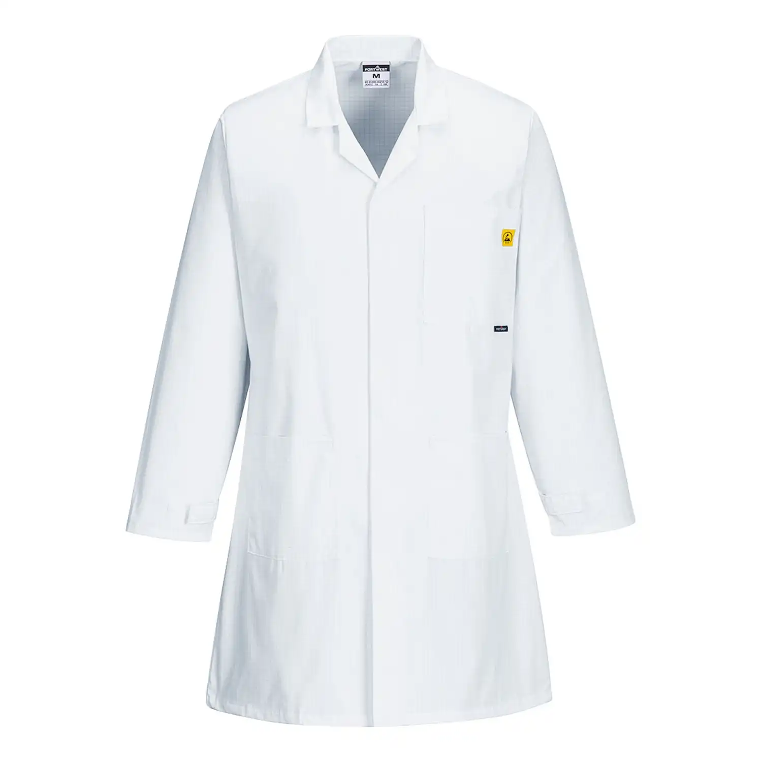 Die hochwertige ESD Arbeitsjacke „AS10“ von PORTWEST® richtet sich gezielt an Umgebungen, in denen elektrostatische Ableitfähigkeit gefragt ist. Das Außenmaterial besteht aus einer langlebigen, pflegeleichten und komfortabler Materialzusammensetzung (65 % Polyester, 34 % Baumwolle, 1 % leitfähige Faser). Dank verdeckter Druckknopfleiste und verstellbaren Manschetten bietet die Jacke praktische Funktionalität mit Stil. Ob im Labor, in der Elektronikfertigung oder im ESD-geschützten Bereich – diese Jacke vereint eine klare Optik mit Funktion.