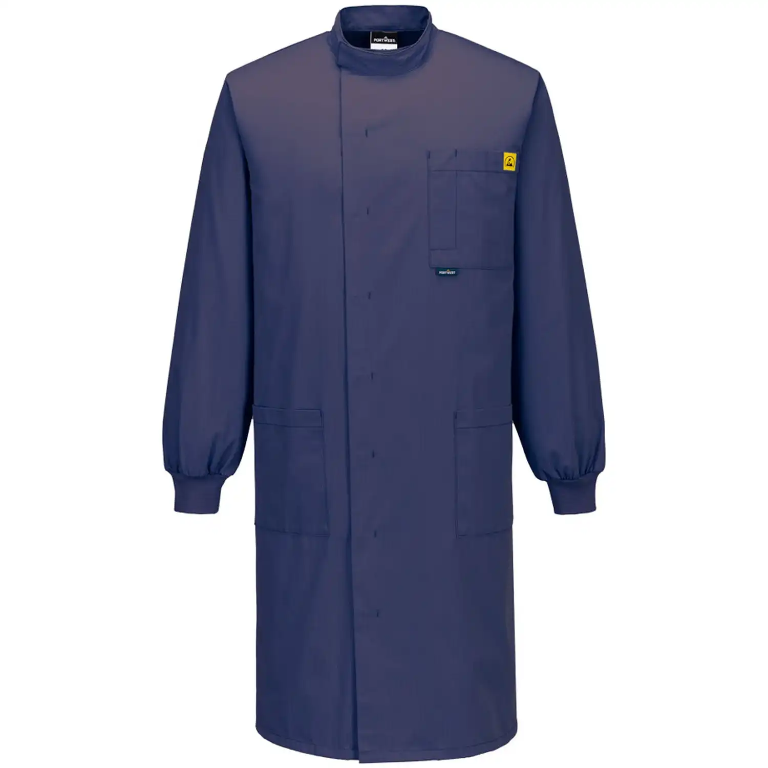der antistatische ESD-Kittel „AS15“ des Herstellers PORTWEST® kombiniert verlässlichen elektrostatischen Schutz mit hohem Tragekomfort und einem funktionalen Design – perfekt für Labor, Werkstatt oder Montage. Das Material aus 65 % Polyester, 34 % Baumwolle und 1 % leitfähiger Faser besitzt ein angenehm leichtes Gewicht von ca. 210 g/m². Dank Texpel-Finish bleibt das Gewebe wasser- und schmutzabweisend. Der gerade Schnitt mit komfortablen Rippbündchen sorgt für angenehme Bewegungsfreiheit. Zertifiziert nach EN 1149-5 und EN 61340-5-1 erfüllt der Kittel alle Anforderungen elektrostatisch kontrollierter Umgebungen.Besonderheiten:
