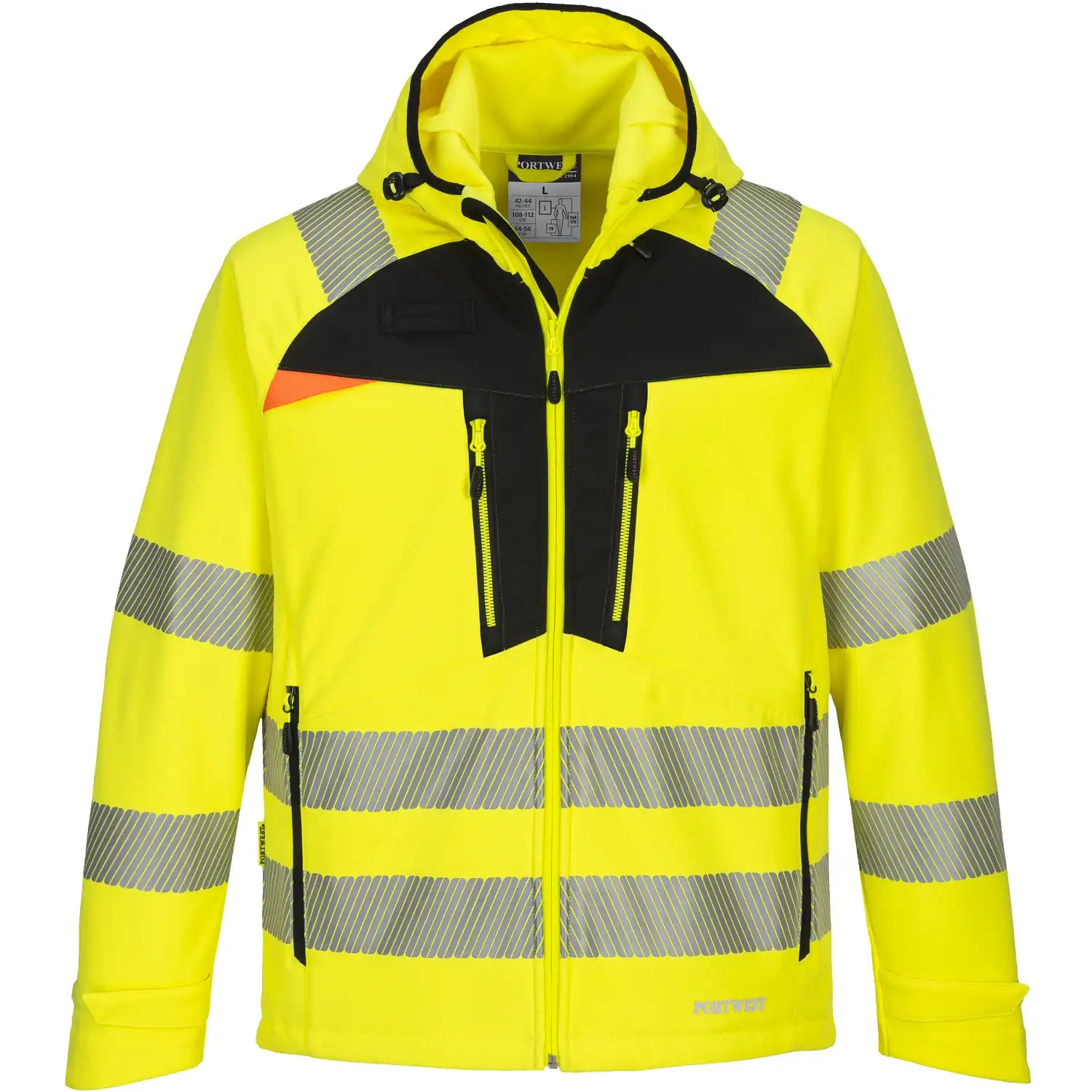 Die Warnschutz Softshelljacke „DS475" aus der DX4-Serie von PORTWEST® ist ein bequemer Begleiter für Arbeiten in Bau, Handwerk und Industrie. Gefertigt ist die Funktionsjacke aus einem strapazierfähigen Ripstop-Softshell-Gewebe, welches durch den hohen Elasthan-Anteil von ca. 8% einen angenehmen Stretch-Effekt bietet. Um gleichzeitig die Langlebigkeit zu erhöhen sind kontrastfarbige Bereiche an der Brust aus abriebfestem Nylon gefertigt.
