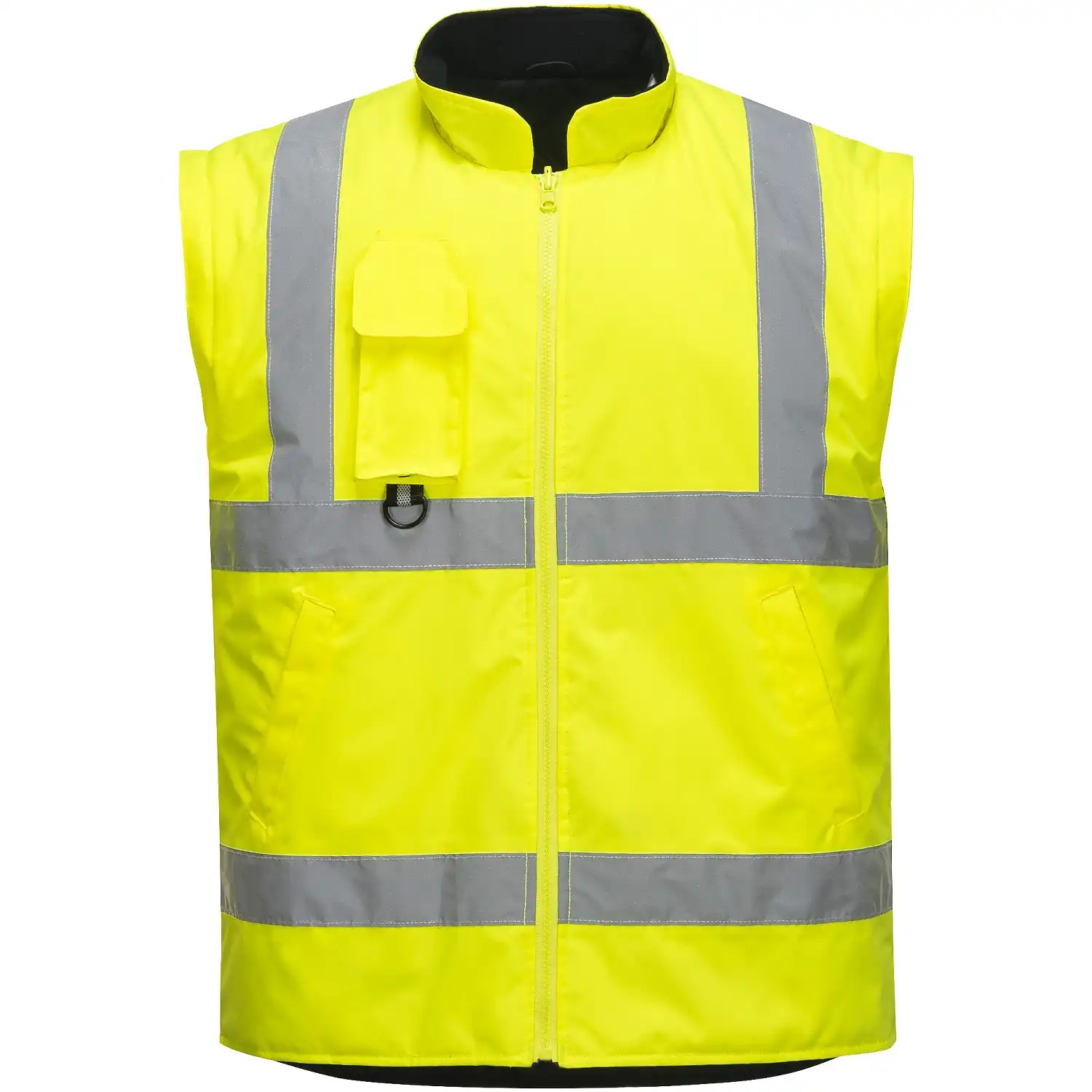 Die herausnehmbare Innenjacke ist aus einem klassischen Sweat-Gewebe gefertigt, das dank des Baumwoll-Anteils von ca. 35% angenehm auf der Haut liegt. Diese ist mit einem weichen Polyester-Steppfutter gefertigt, welches Sie auch in eisigen Umgebungen angenehm warm hält. Zusammen mit der Außenjacke ist sie als Kälteschutzbekleidung gemäß der EN 342 zertifiziert. Um auch in wärmeren Umgebungen getragen zu werden können Sie die Ärmel über Reißverschlüsse einfach abnehmen. Zudem kann die Innenjacke sowohl mit der Warnschutz-Seite als auch mit der Stepp-Seite nach außen getragen werden.