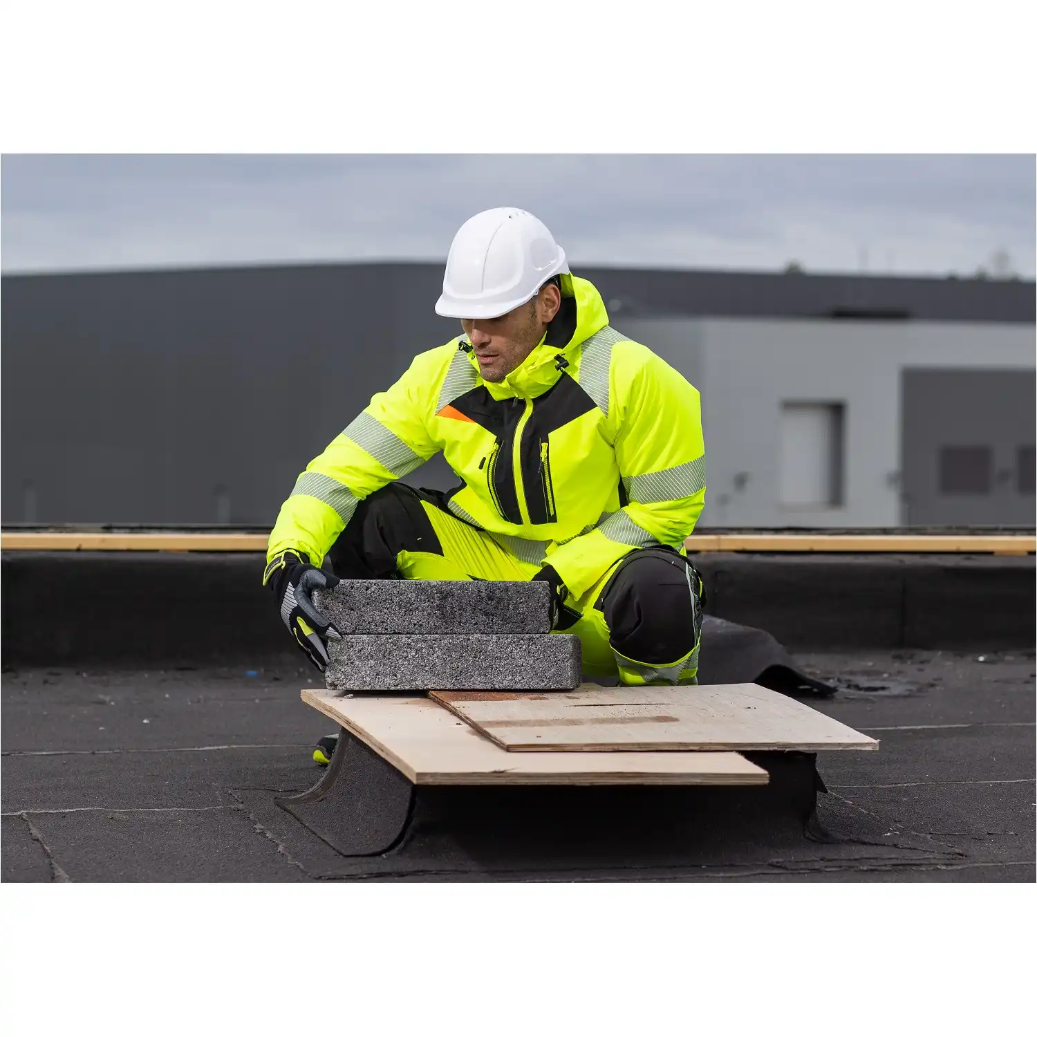 Um die nötige Sicherheit kümmert sich das fluoreszierende Obermaterial, mit welchem Sie in unübersichtlichen Umgebungen schnell erkannt werden. Um den Torso, die Schultern und die Ärmel sind breite Reflexstreifen angebracht, welche den Stretch des Materials durch den segmentierten Druck nicht beeinträchtigen. In Kombination verleihen diese der Jacke die Warnschutzklasse 3 der EN ISO 20471.