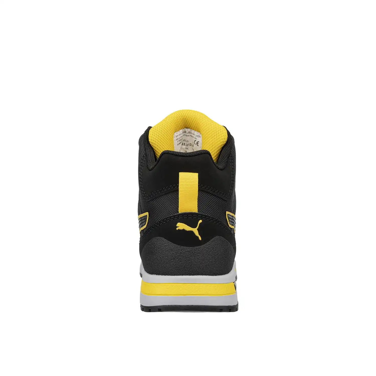 Die Sicherheitshochschuhe S3 "Crosstwist BLK Mid" von PUMA® kombinieren robustes GlattLeder, atmungsaktives BreathActive-Futter und eine EVA-Zwischensohle mit IdCELL-Dämpfung für hohen Komfort. Die rutschhemmende, hitzebeständige Gummisohle sorgt für sicheren Halt, während Fiberglaskappe und metallfreier FAP®-Durchtrittschutz besten Schutz bieten – perfekt für Handwerk, Bau und Industrie.