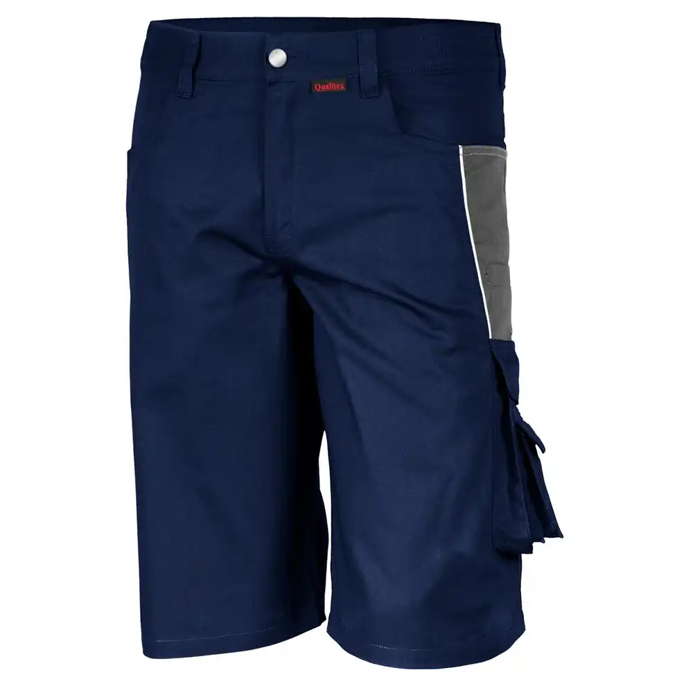 Die Shorts „pro mg 245“ von Qualitex® sind praktische Begleiter für fast alle Arbeiten. Gefertigt ist die kurze Arbeitshose aus einem leichten Mischgewebe mit nur ca. 245g/m², welches durch den Baumwoll-Anteil von ca. 35% angenehm weich auf der Haut liegt. Der Schnitt ist dabei gerade gehalten, um Ihnen optimale Bewegungsfreiheit zu bieten.Um bei Arbeiten mit viel Bewegung sicher zu sitzen ist der Bund der kurzen Hose mit elastischen Gummizügen an den Seiten ausgestattet. Zusätzlich sind hier 6 robuste Gürtelschlaufen angebracht, welche sie in jeder Situation sicher halten. Verschlossen wird die Hose dabei über einen klassischen Jeansknopf aus Metall, sowie einen YKK®-Reißverschluss im Hosenschlitz. Reflektierende Paspeln an den Seiten und am Gesäß erhöhen gleichzeitig Ihre Sichtbarkeit in dunklen Umgebungen.