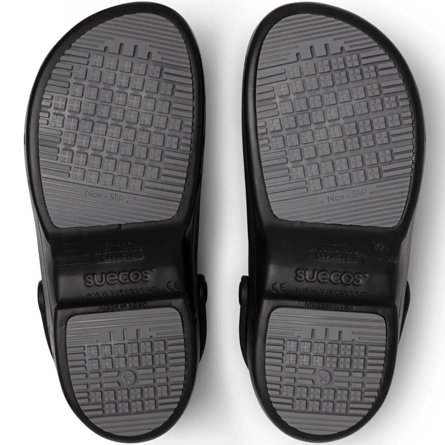 Die Berufsclogs „THOR+“ von SUECOS® sind Allrounder für Küche, Station und Praxis. Gefertigt sind die Arbeitsclogs aus geschmeidigem EVA, welches sich durch seine antimikrobielle Oberfläche einfach reinigen lässt. Um dabei die Strapazierfähigkeit zu erhöhen ist die Spitze zusätzlich verstärkt. Belüftungslöcher an den Seiten erhöhen die Atmungsaktivität und Luftzirkulation.Die Laufsohle der Clogs von SUECOS® ist aus rutschfestem Gummi gefertigt, welches durch das flache Hallenprofil hervorragenden Grip auf glatten Oberflächen, wie z.B. Metall, Fliesen oder Linoleum bietet. Die Zwischensohle aus weichem EVA bietet Ihnen angenehme Dämpfung für harte Untergründe. Das anatomische Fußbett ist zusätzlich mit Massage-Kügelchen ausgestattet, welche einerseits für sicheren Sitz sorgen und andererseits die Durchblutung Ihrer Füße verbessert.