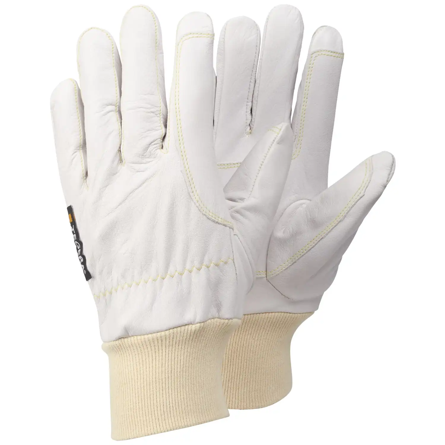 Die TEGERA® Leder Arbeitshandschuhe "88700" sind die ideale Wahl für alle, die auf der Suche nach hochwertigen und widerstandsfähigen Arbeitshandschuhen für allgemeine Arbeiten sind. Mit einer Materialstärke von 0,8–0,9 mm bestehen diese Handschuhe aus Vollnarben-Ziegenleder, was nicht nur für ein angenehmes Tragegefühl sorgt, sondern auch für eine lange Lebensdauer und hervorragenden Schutz. Ein herausragendes Merkmal dieser Handschuhe ist der verstärkte Zeigefinger, der die Haltbarkeit und den Schutz in einer besonders beanspruchten Zone erhöht. Darüber hinaus sind die Nähte ebenfalls verstärkt, was die Stabilität und Langlebigkeit dieser Arbeitshandschuhe weiter verbessert. Die TEGERA® Leder Arbeitshandschuhe "88700" sind vielseitig einsetzbar und eignen sich hervorragend für allgemeine Arbeiten in verschiedenen Branchen. Egal, ob Sie in der Werkstatt, im Garten oder auf der Baustelle tätig sind, diese Handschuhe bieten Ihnen den erforderlichen Schutz und Komfort. Ein weiteres wichtiges Feature dieser Arbeitshandschuhe ist ihre Beständigkeit gegen Kontaktwärme bis zu 100°C. Dies ermöglicht Ihnen, auch in Umgebungen mit erhöhter Wärmebelastung sicher zu arbeiten, ohne die Hände zu gefährden.Besonderheiten