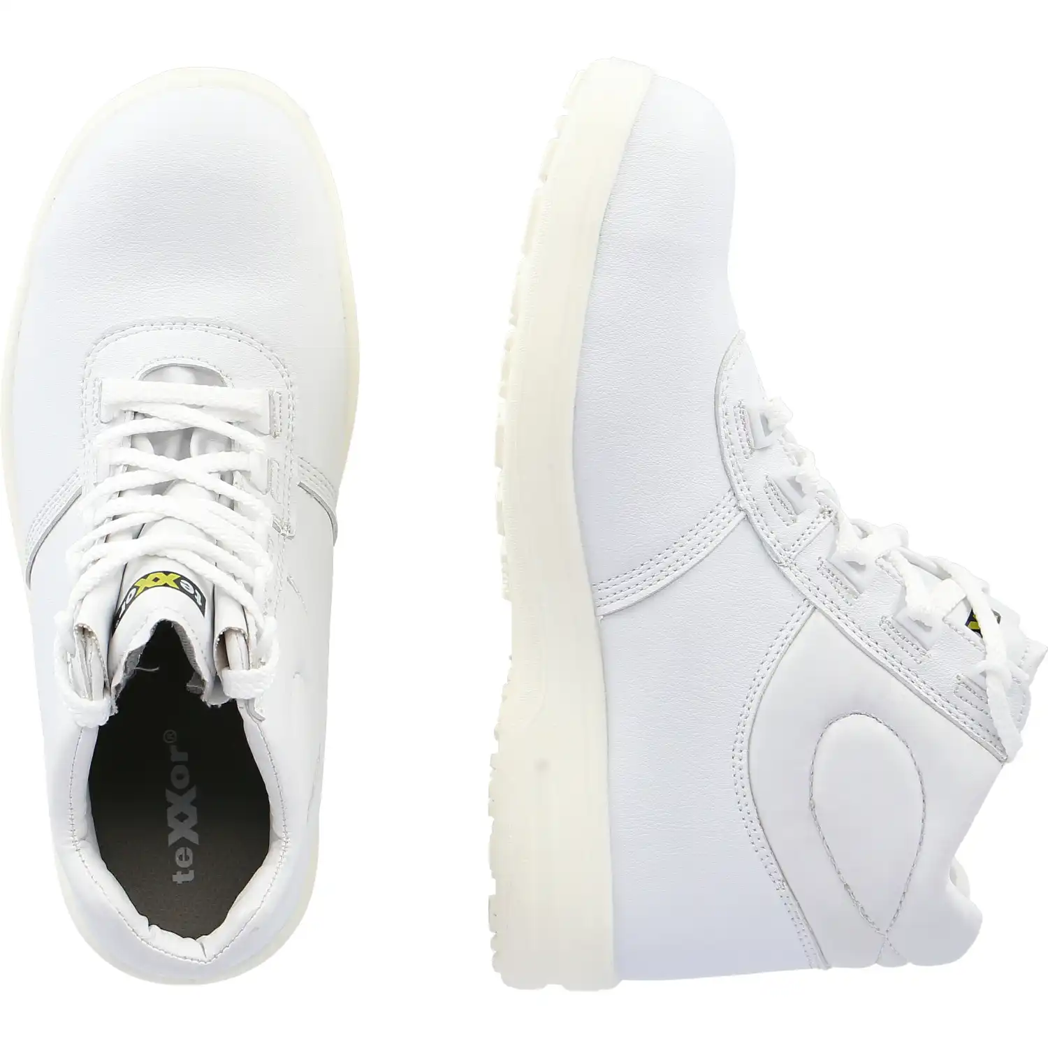 Die Sicherheitshochschuhe „MONTPELLIER" von teXXor® sind die idealen Begleiter für Arbeiten in Innen- und Außenbereichen, sowie auf glatten Hallenböden. Durch die Verwendung von ausschließlich weißen Materialien, ist der Schuh bestens für den Einsatz in Weißbereichen geeignet. Das Obermaterial der Schuhe besteht aus wasserabweisendem Microfaser. Im Inneren des Schuhs ist eine ganzflächige Einlegesohle, welche für ein angenehmes Fußklima sorgt. Die Laufsohle besteht aus rutschfestem PU. Die Sohle ist zudem nicht kreidend und hinterlässt auf hellen Untergründen keine Streifen. Besten Schutz bietet die breite Zehenschutzkappe aus Stahl. Mit Weite 11 fällt der Sicherheitsschuh angenehm breit aus und passt so auch Trägern mit kräftigeren Füßen. Die Hochschuhe sind bis 30°C waschbar. Geschlossen werden die Schuhe ganz einfach durch eine klassische Schnürung.Besonderheiten